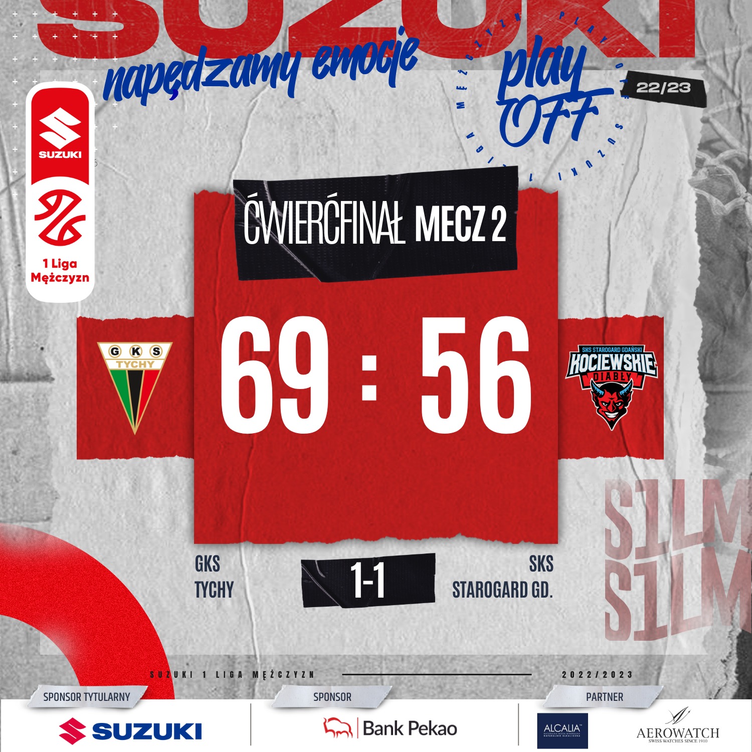 Stan rywalizacji - 1:1. Teraz rywalizacja przenosi się do Starogardu Gdańskiego, gdzie spotkania zostaną rozegrane w sobotę 22 kwietnia i niedzielę 23 kwietnia. Oba mecze rozpoczną się o godzinie 18:00.