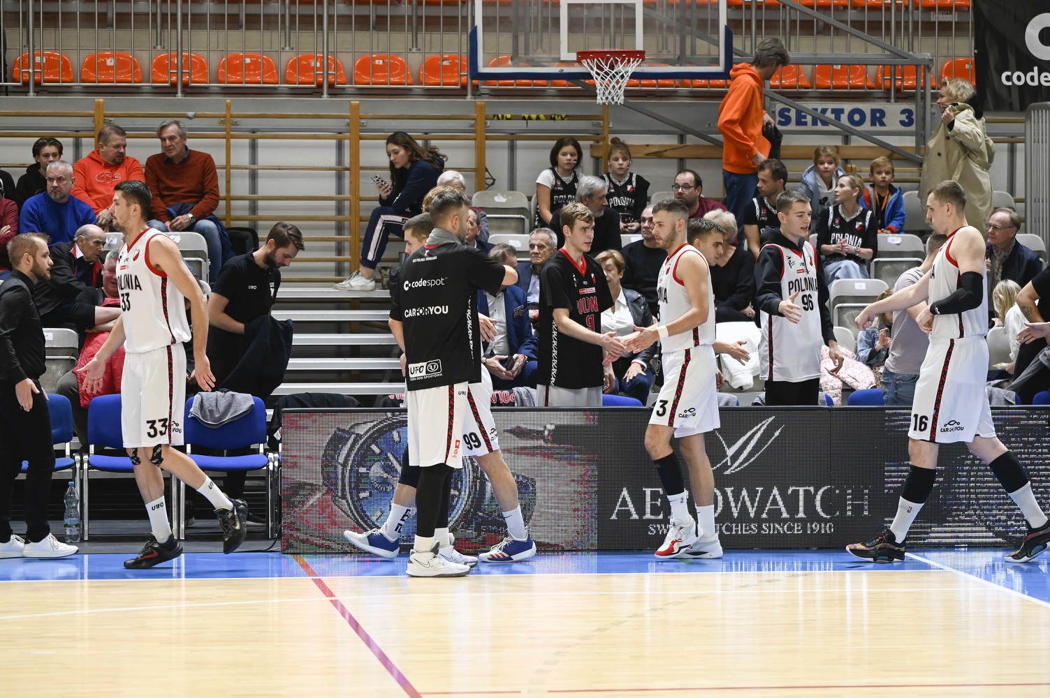 | 16, D. Cechniak, wygrany rzut sędziowski | 09:59:00 | |||