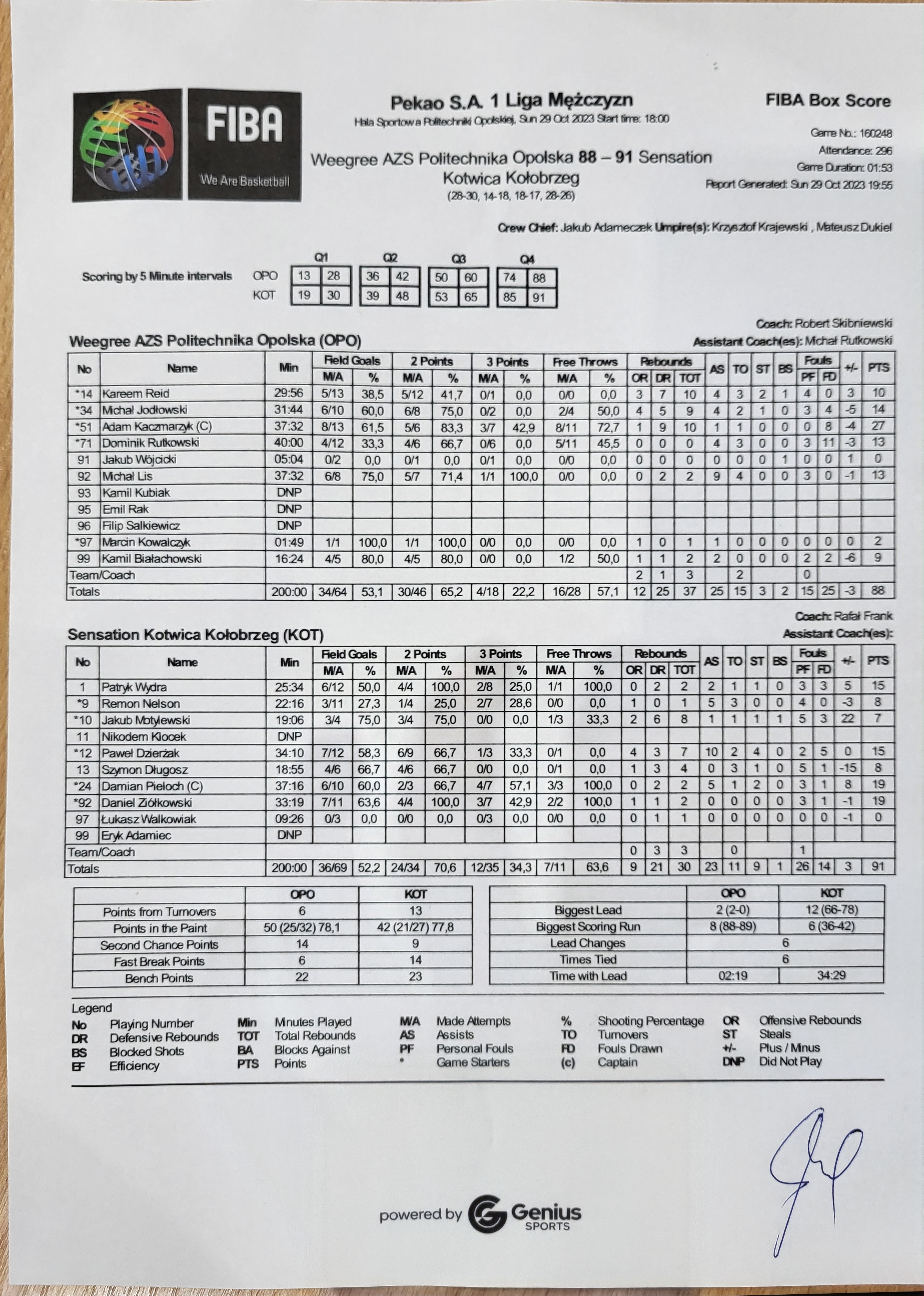 13 Szymon Długosz 8 18:554/6 66.7   4/6 66.70/1 0.01 3 4   5 1 3 1   1 7 -15