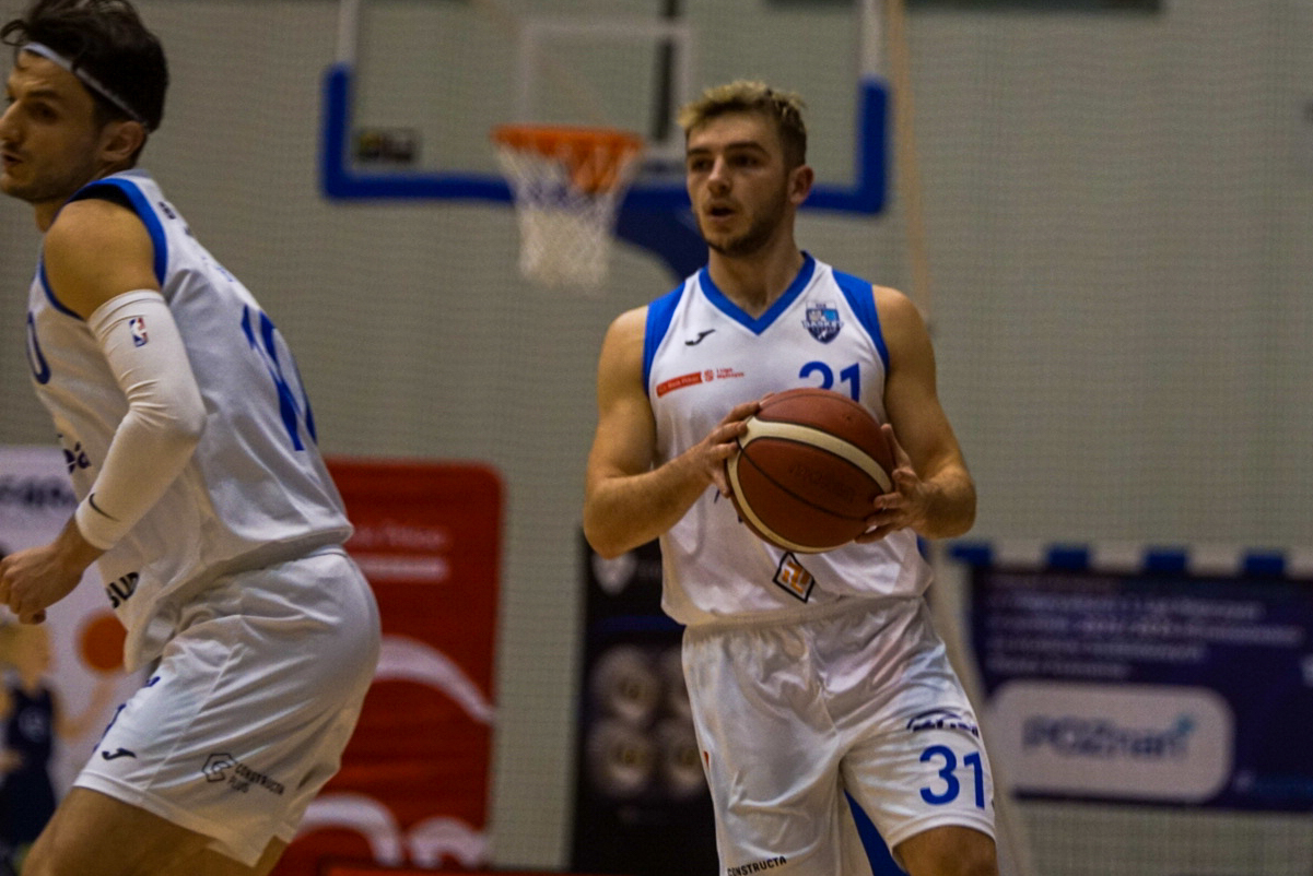 7, Ł. Uberna, celny lay-up |