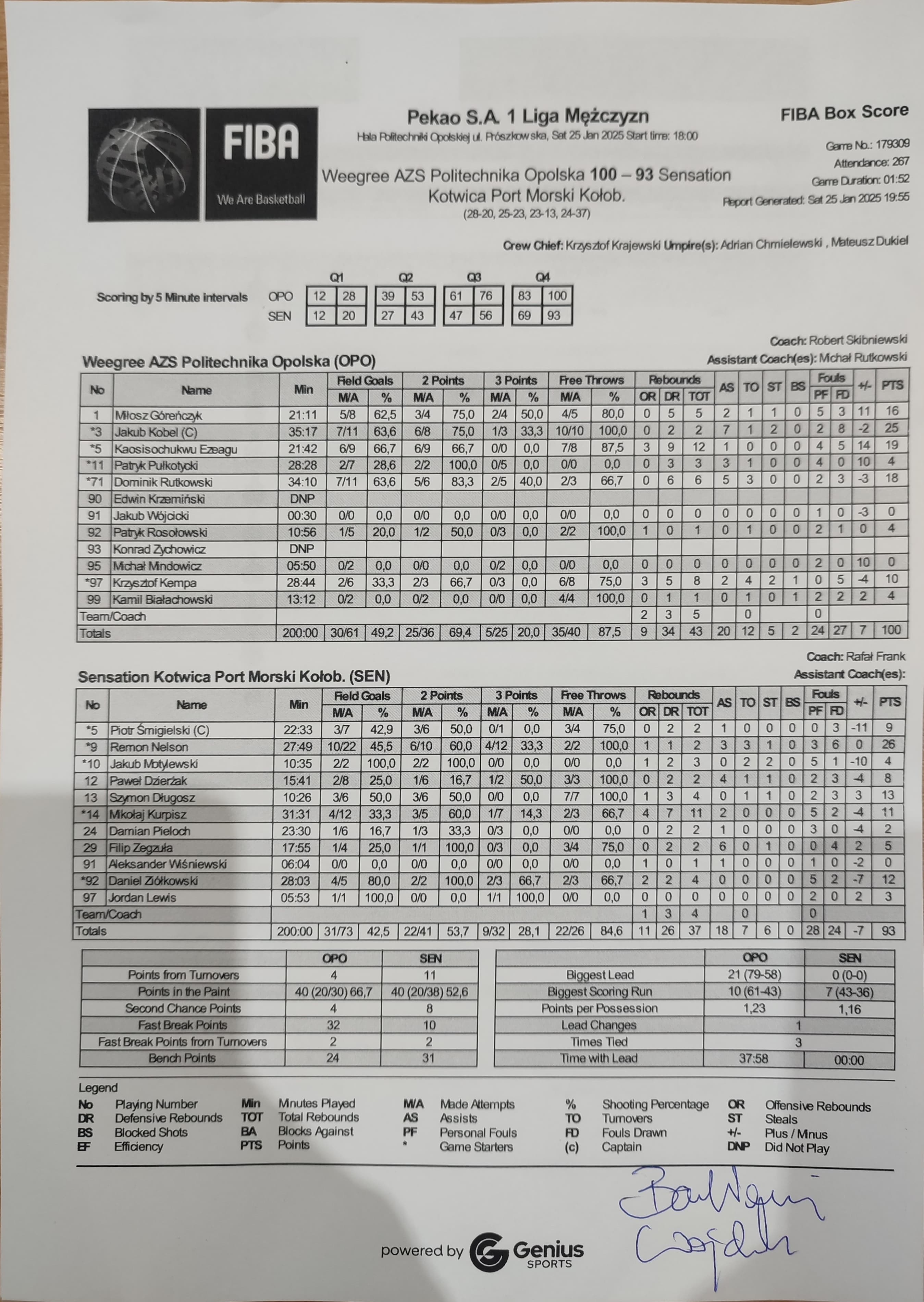 | 08:02:00 | 5, P. Śmigielski, faulowany | |||